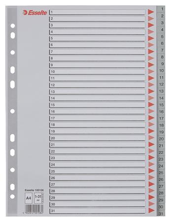 Regiszter, műanyag, A4, 1-31, ESSELTE, szürke