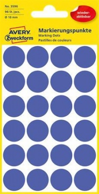 KezdőlapIrodaszerekIrodai papíráruEtikettekEtikett, 18 mm, kör, eltávolítható, AVERY ZWECKFORM, indigókék, 96 etikett/csomag