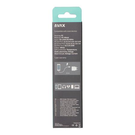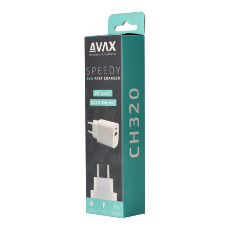 Hálózati töltő, USB-A + USB-C, 20W, AVAX "CH320 Speedy", fehér